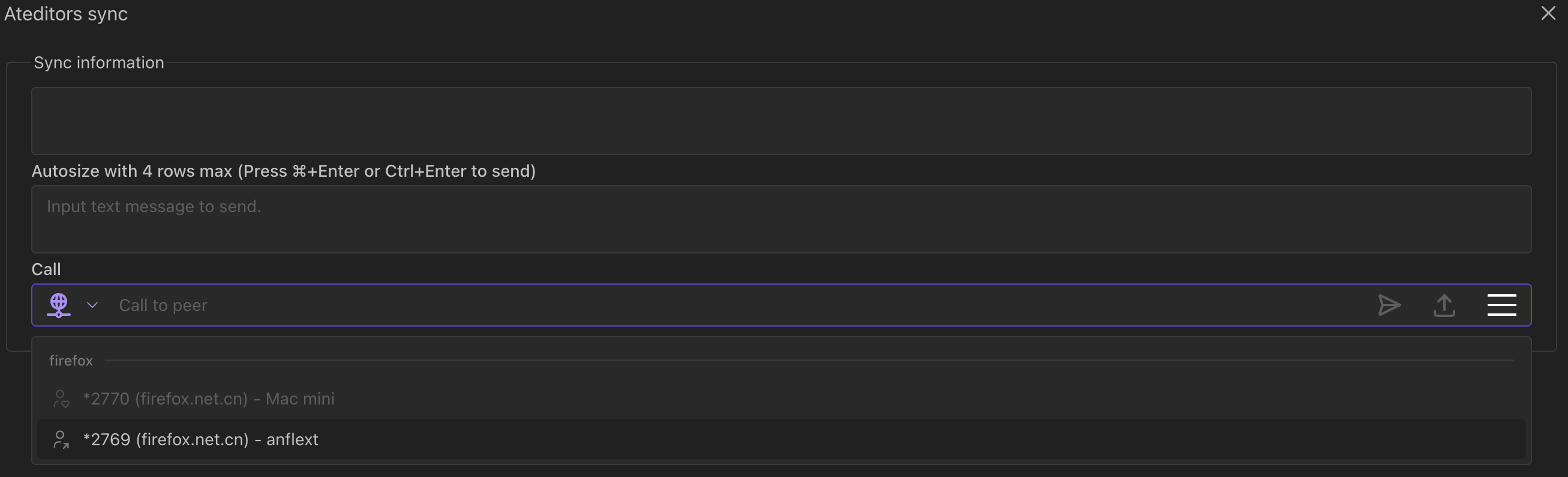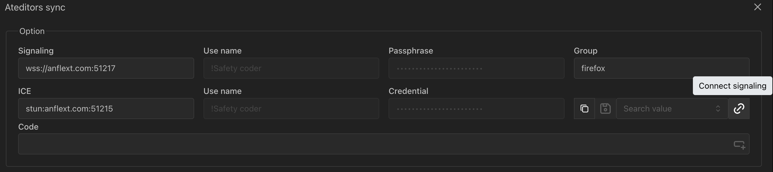 要使用这个信令服务,你只需要访问 ateditors 的演示应用网站运行数据同步功能。添加信令服务字段信息如下: