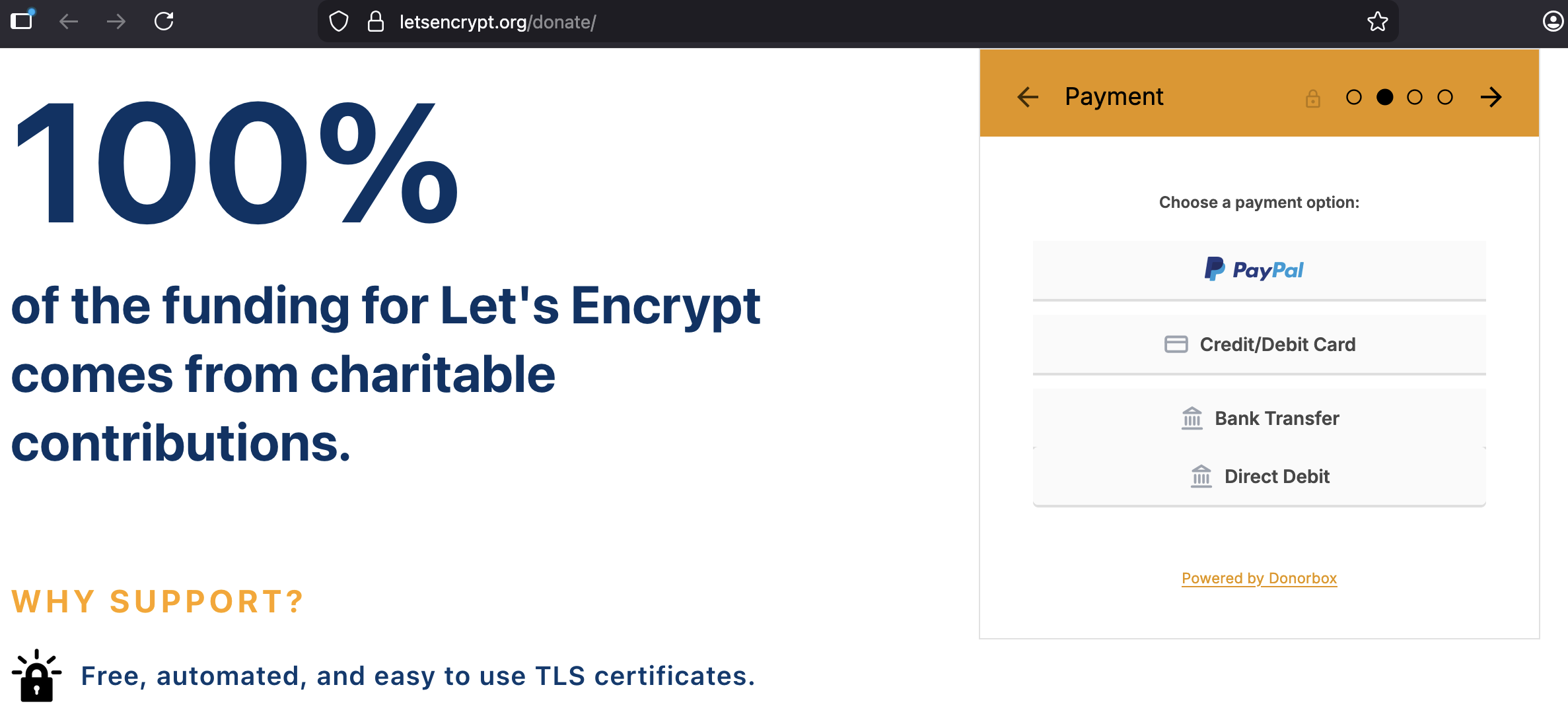 我向 Let’s Encrypt 捐赠了25美元。如果您喜爱并使用Let's Encrypt,请随时量力而行捐赠支持 Let's Encrypt。